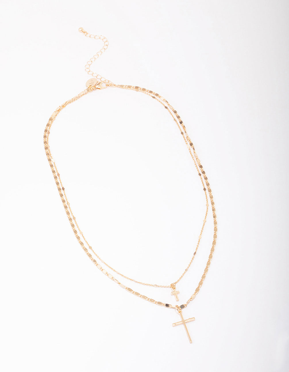 For a timeless addition to your outfit, style this gold-toned necklace. This layered necklace features two rows of gold chains, each adorned with classic cross motifs.