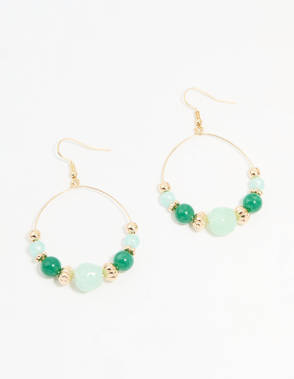 Add a splash of colour to your accessories with these Gold Green Beaded Circular Drop Earrings. Featuring a sleek gold-tone finish and a playful circular design, these drop earrings are adorned with green beads that give off a fresh, vibrant vibe. Perfect for a casual day out or a fun evening event, these earrings pair effortlessly with flowy dresses, jumpsuits, or even your favourite jeans and a blouse. Their lightweight design makes them ideal for all-day wear, while the bold green beads add a stylish pop of colour to any outfit. Whether you're dressing up for brunch or adding a bit of sparkle to your everyday look, these stylish beaded earrings are your go-to for effortless charm!
