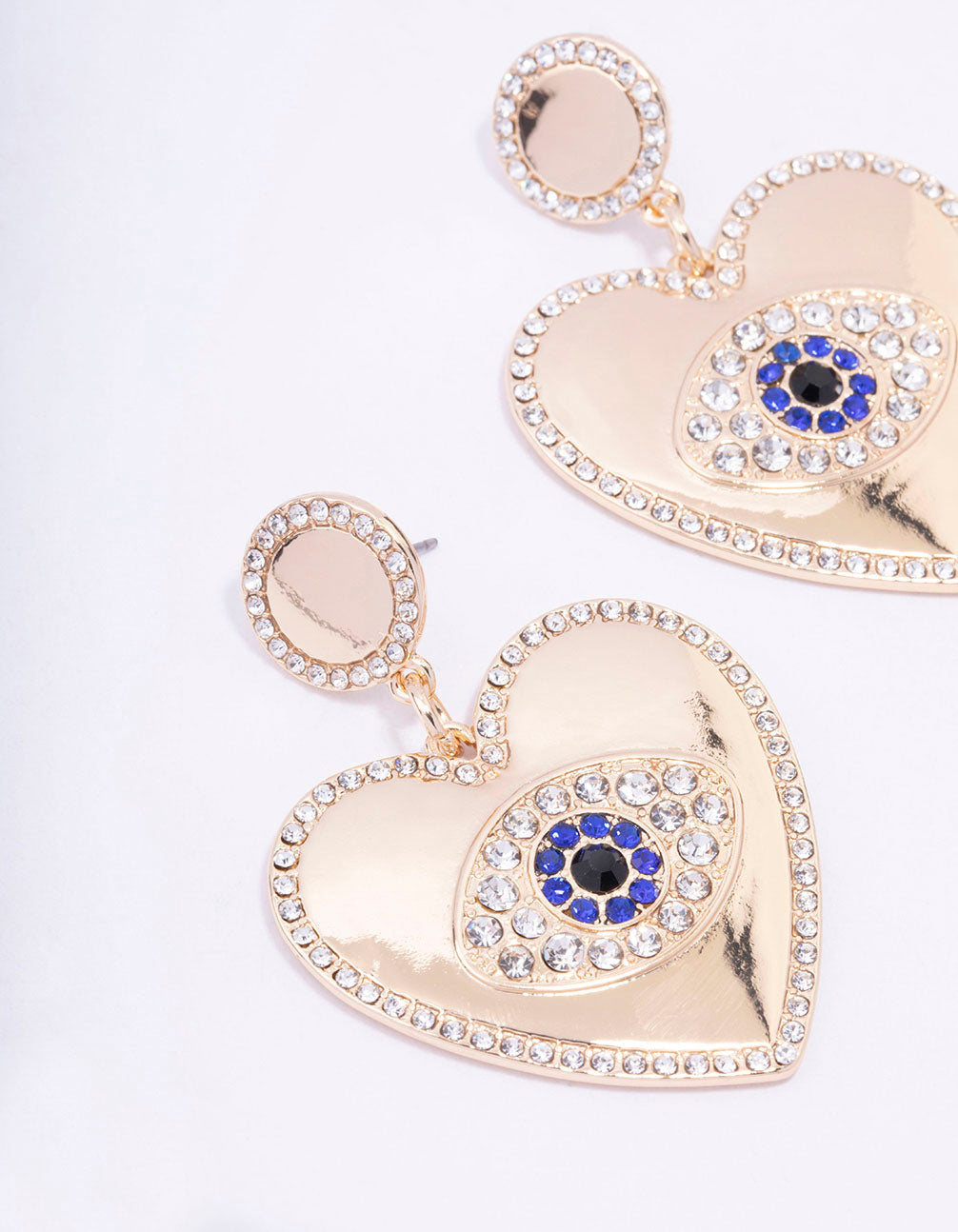 Style these Gold Heart Diamante Eye Drop Earrings with a set of simple studs for a layered look.