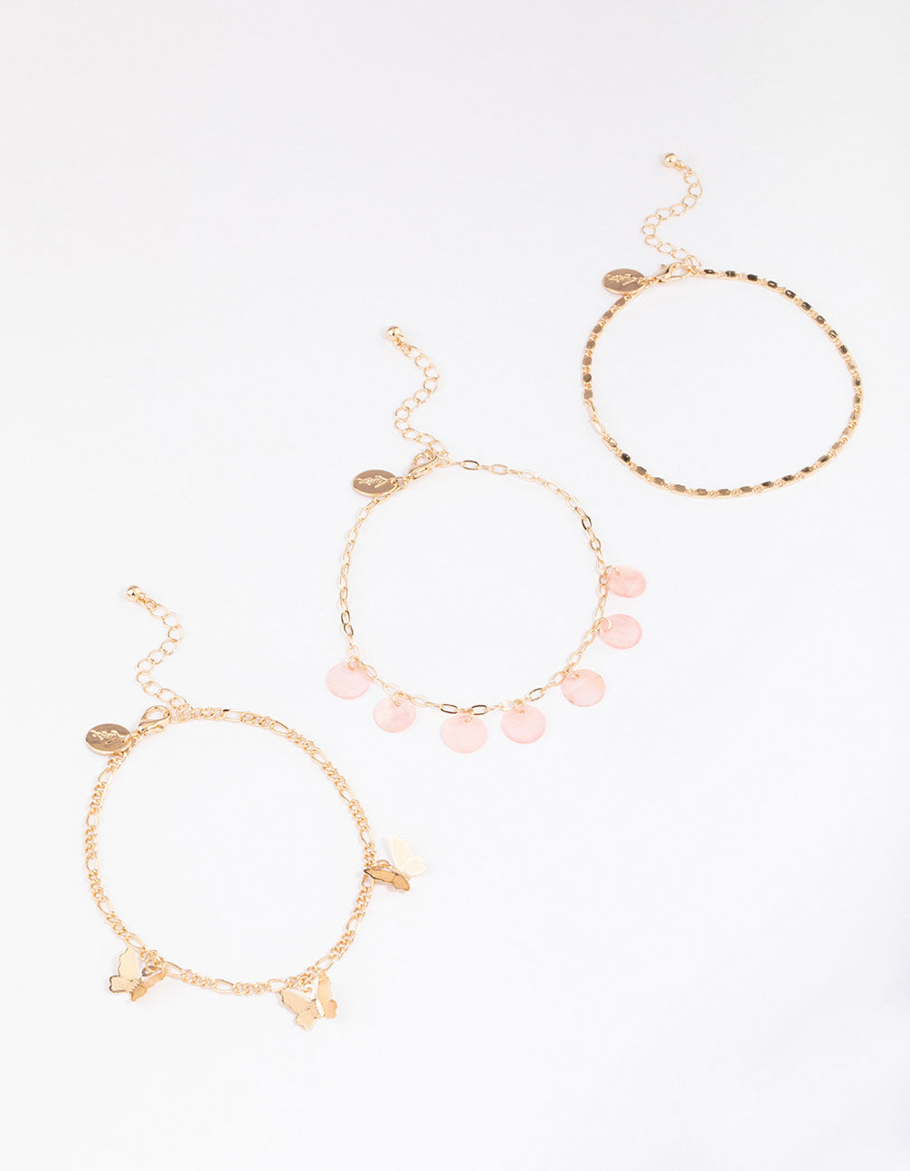 Gold Genuine Shell Butterfly Anklets 3-Pack