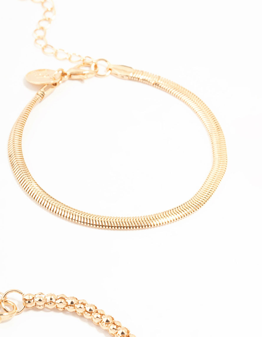 Elevate your accessory game with this Gold Mixed Chain Bracelets Pack, perfect for adding a touch of effortless style to any outfit. This versatile wristwear set features three unique chain designs in a sleek gold-tone finish, making it ideal for layering or wearing solo. Whether you're dressing up for a night out or keeping it casual for brunch, these bracelets are the ultimate jewellery must-have. Pair them with your favourite watch or stack them with other bangles for a chic, on-trend look. Perfect for gifting or treating yourself, this set is all about mixing style and ease for every occasion.