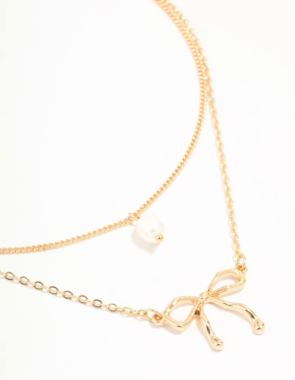 Gold Pearl & Bow Layered Necklace