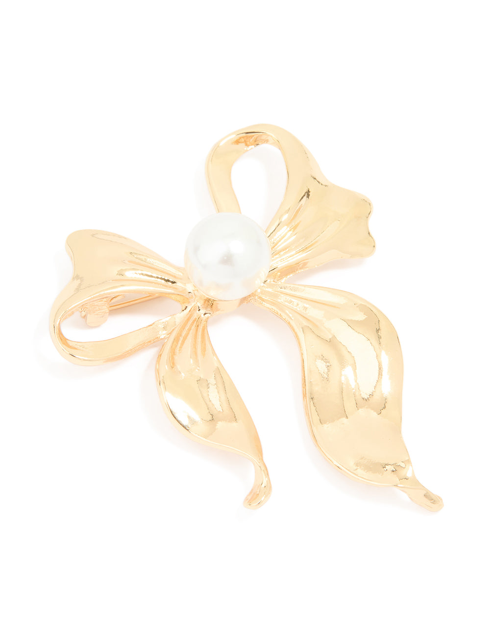 Gold Pearl Center Bow Brooch