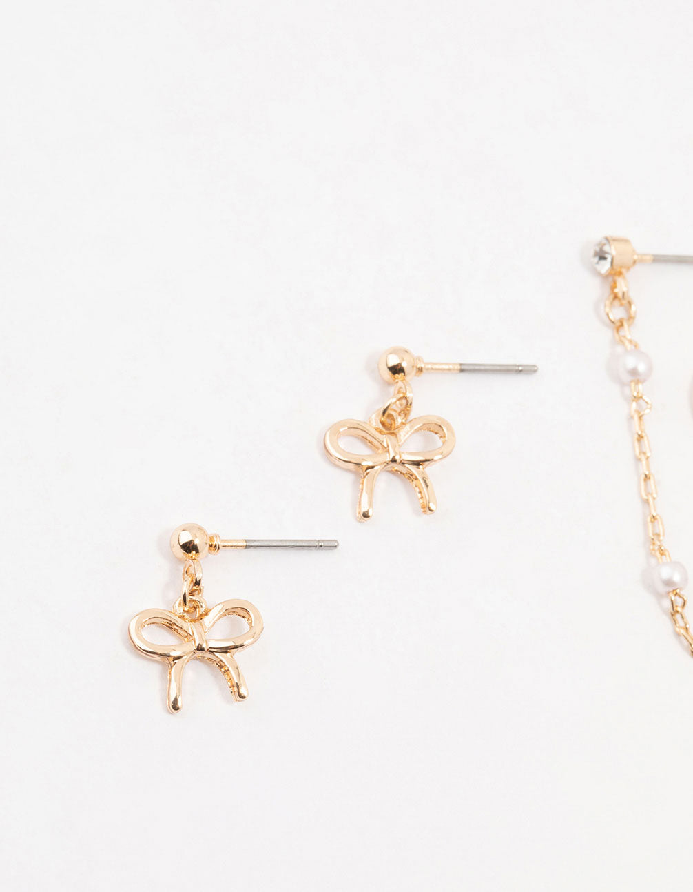 Gold Pearl Chain & Bow Earrings 3-Pack