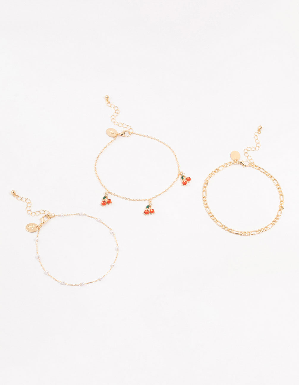 Gold Pearl & Cherry Anklets 3-Pack