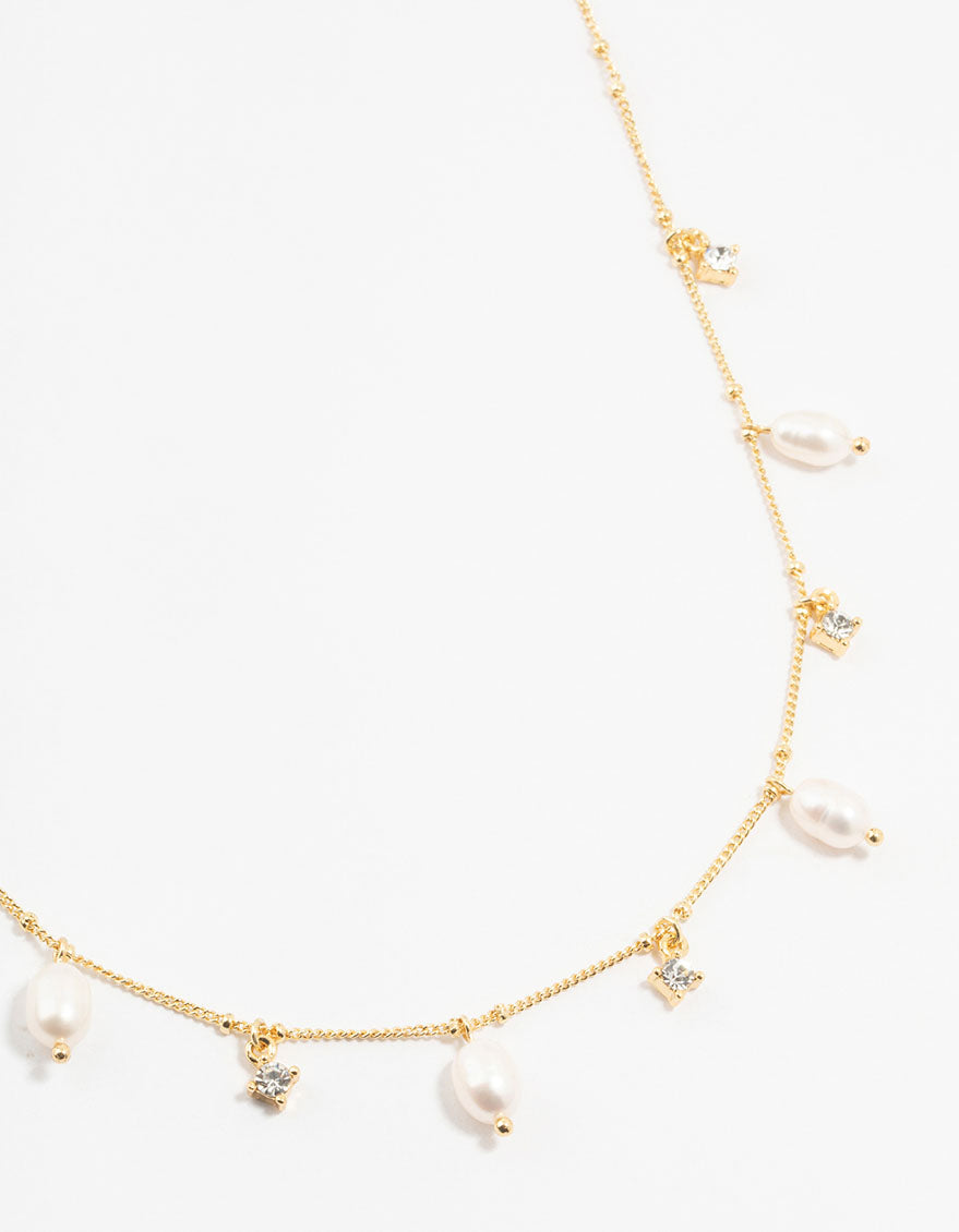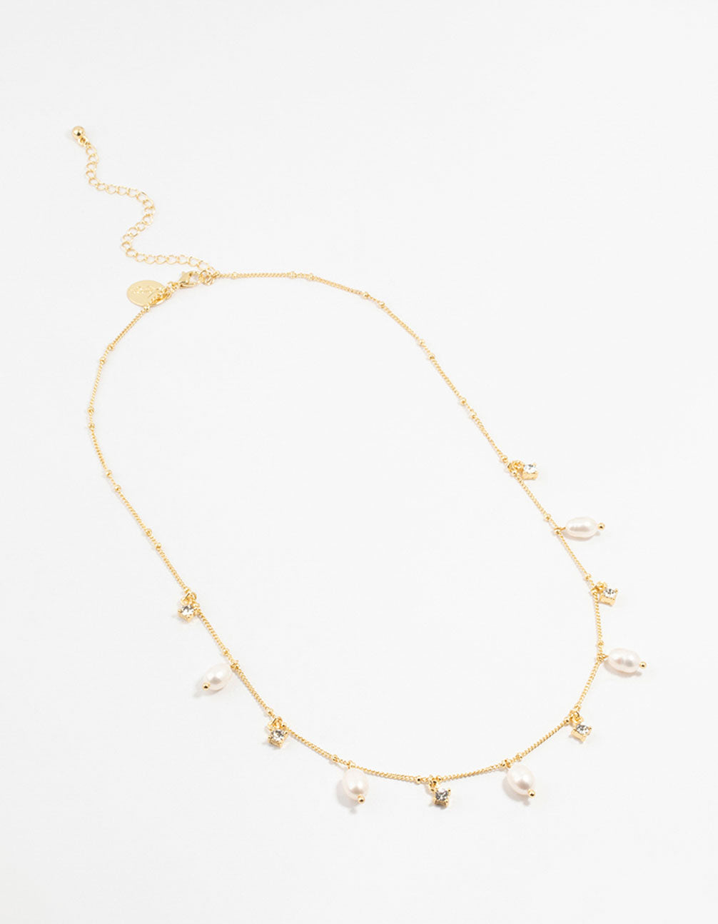 Enhance your style with this gold-plated necklace, featuring luminous freshwater pearls and sparkling cubic zirconia. This versatile piece adds refined elegance to any outfit.
