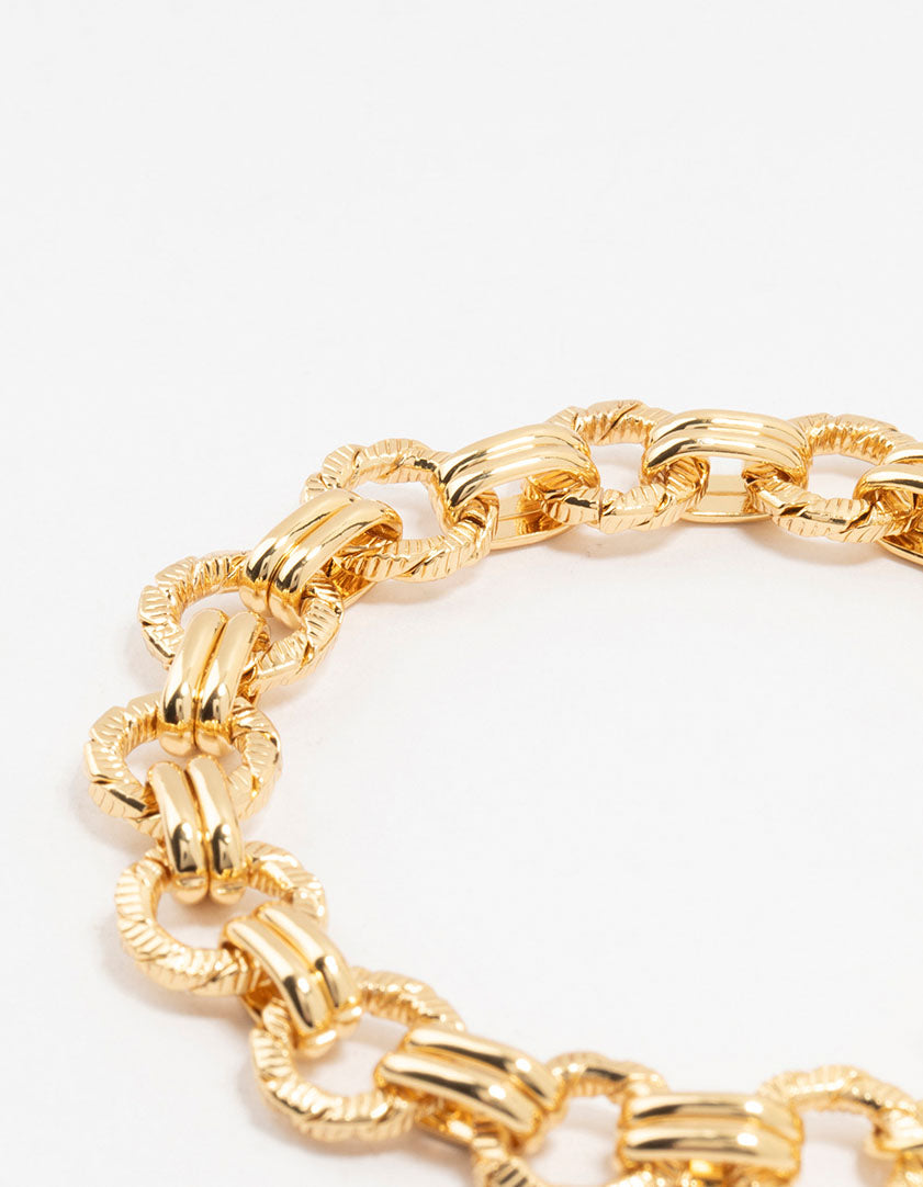 • Gold Plated Brass Nautical Link T Bar Bracelet - link has visual effect only