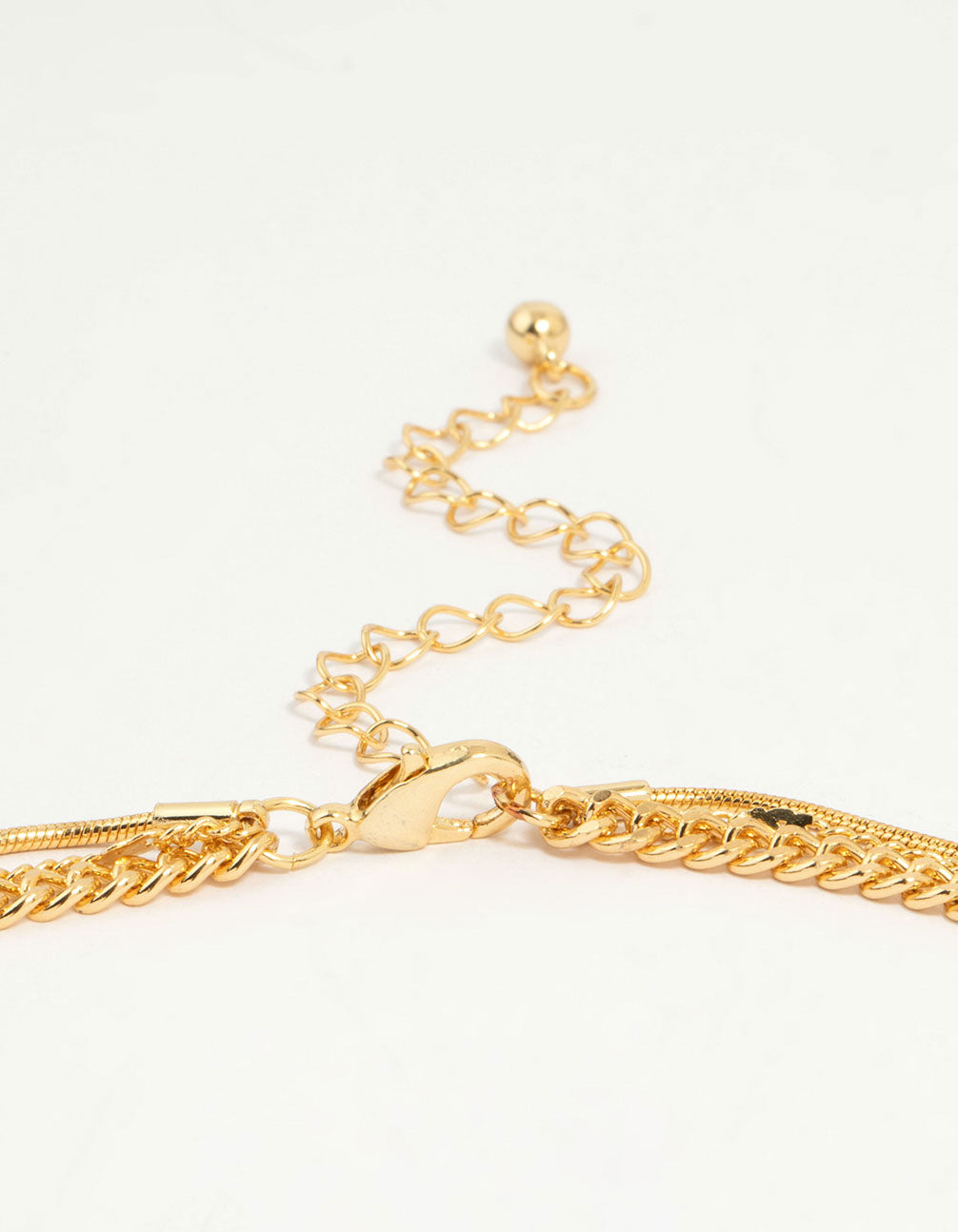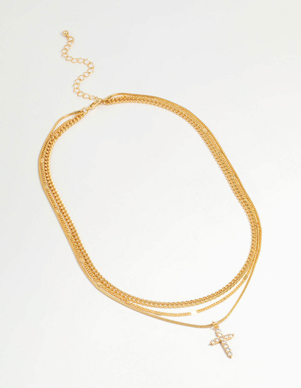 Level up your accessories game with this Gold Plated Cross & Chain Layered Necklace. This stunning layered necklace combines multiple textured chains for a chic, stacked look, including a standout cross pendant chain for that perfect statement. Crafted with a sleek gold plating, it's the ultimate versatile jewellery piece for day-to-night styling. Pair it with a casual tee and jeans for a cool, laid-back vibe or wear it with your favourite dress to turn up the glamour. Whether you're heading to brunch, a festival, or a night out, this layered necklace is the perfect finishing touch to any outfit. Effortlessly stylish and endlessly wearable, it's a must-have addition to your jewellery collection.