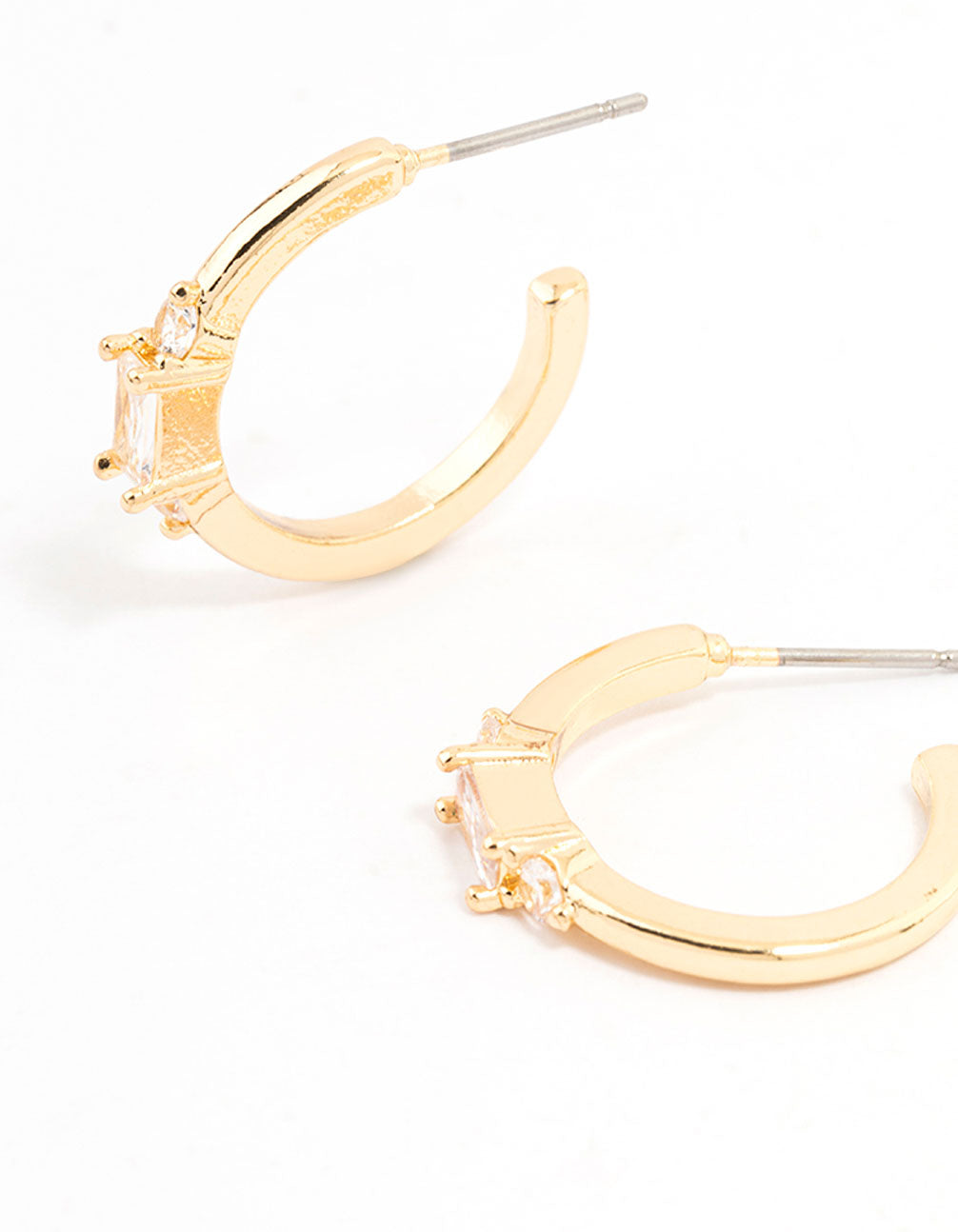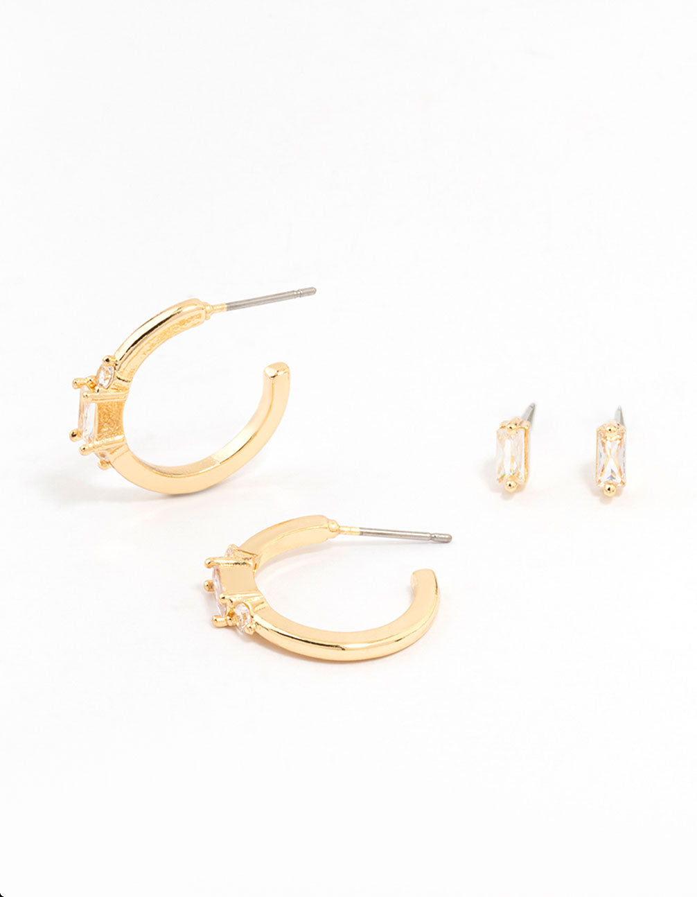 Gold Plated Cubic Zirconia Baguette Stud & Hoop Earrings 2-Pack