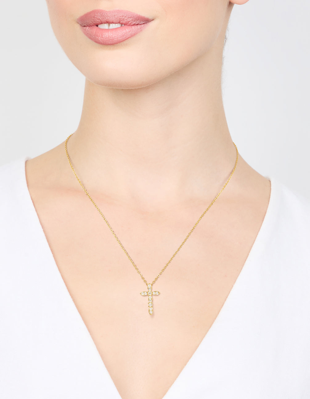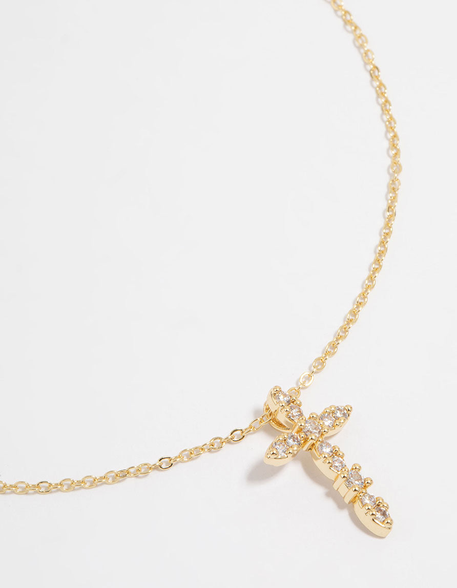 Elevate your style with this gold-plated necklace! Featuring a cubic zirconia encrusted cross pendant, it's perfect for adding some glam and making a statement.