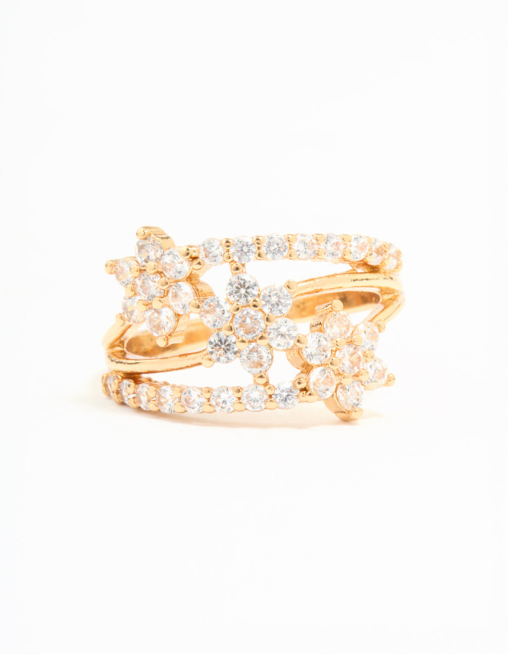 Gold Plated Cubic Zirconia Flower Stacked Ring