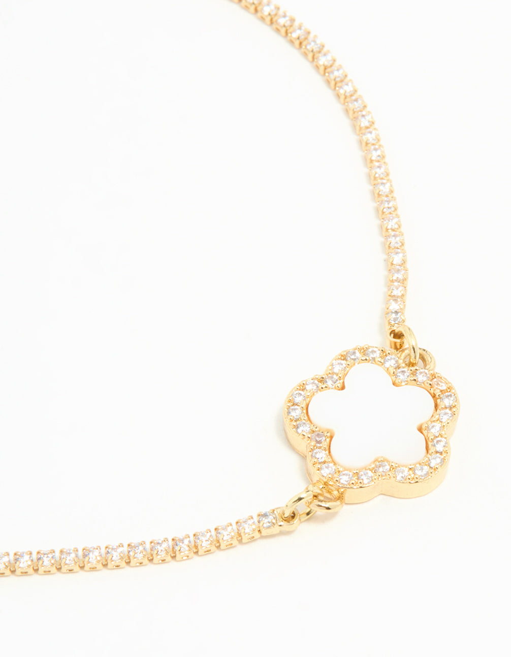 Gold Plated Cubic Zirconia Flower Toggle Bracelet