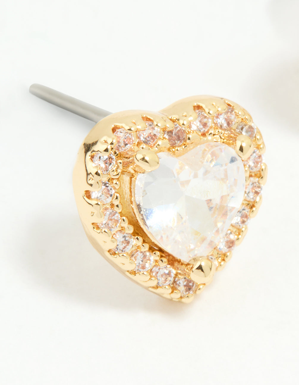 Gold Plated Cubic Zirconia Halo Heart Stud Earrings