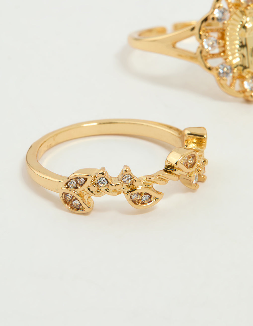 Gold Plated Cubic Zirconia Mary & Floral Rings 2-Pack