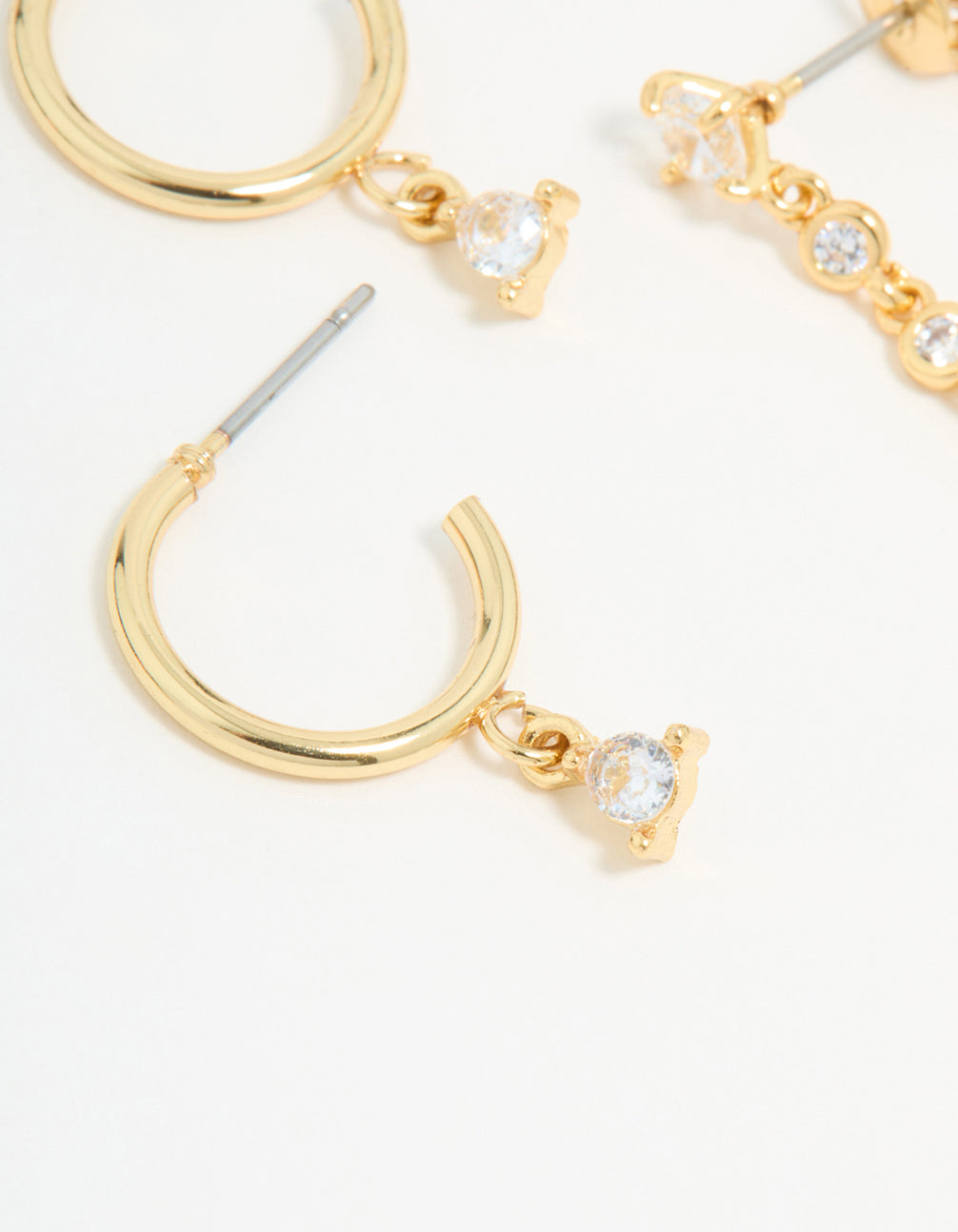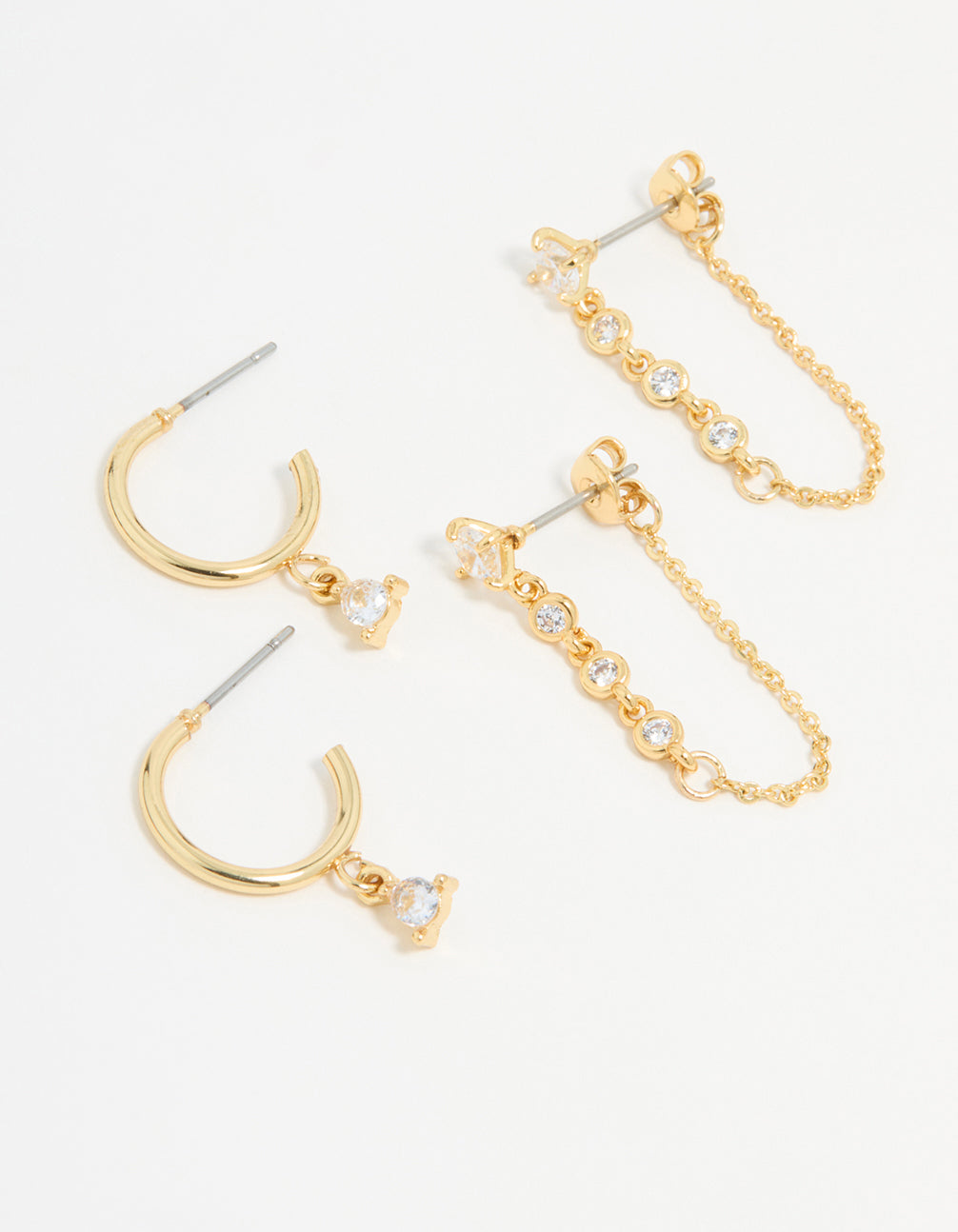Gold Plated Cubic Zirconia Stud & Chain Earrings 2-Pack