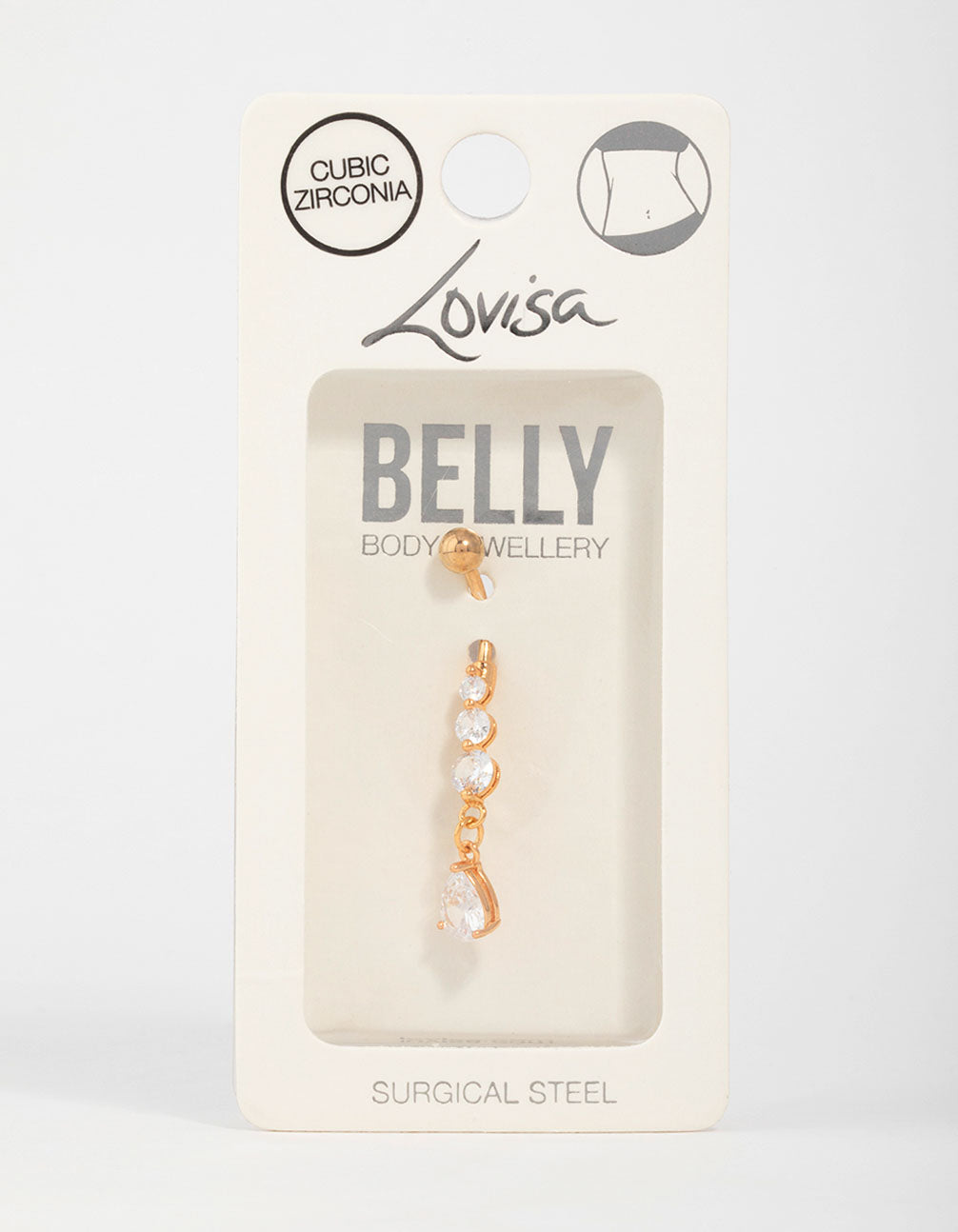 Gold Plated Cubic Zirconia Triple Drop Belly Bar