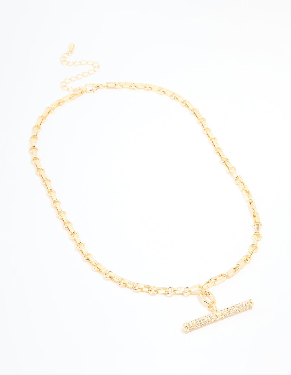 Elevate your accessory game with this Gold Plated Diamante T-Bar Chain Necklace. Crafted with a sleek gold-plated finish, this necklace features a chic T-bar design adorned with sparkling diamantes for a touch of glamour. The delicate chain adds sophistication, making it ideal for layering or standing out solo. Perfect for everything from casual brunches to evening events, this versatile jewellery piece pairs effortlessly with a flowy blouse or a tailored blazer. Whether you're dressing up for a night out or adding a subtle sparkle to your daily look, this necklace is a stylish staple you'll reach for time and time again.