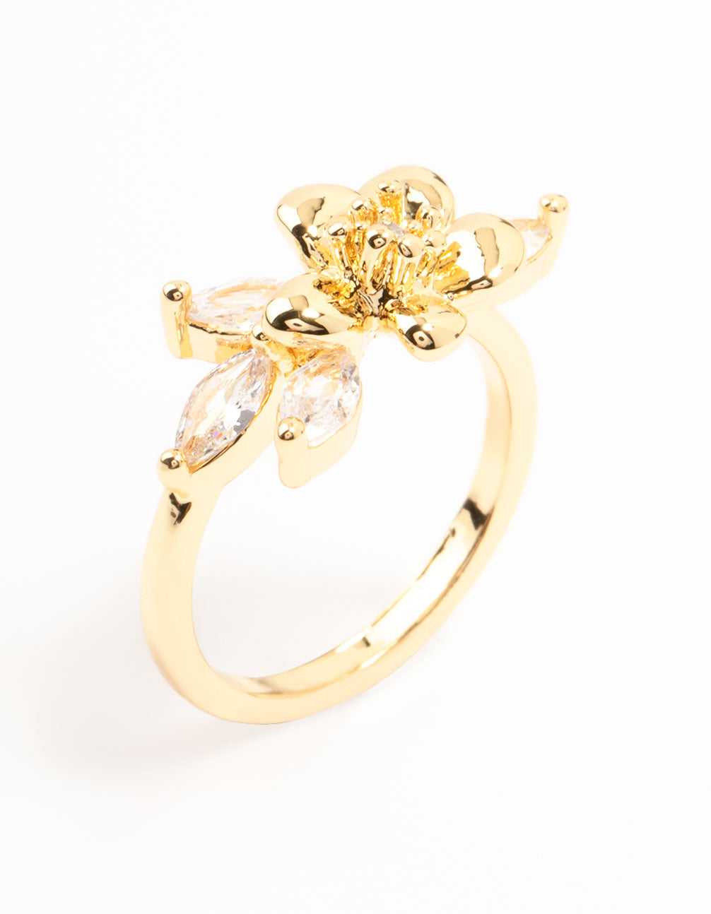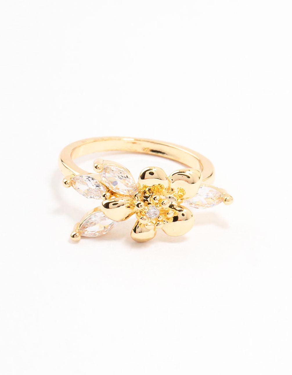 Gold Plated Fine Flower Cubic Zirconia Ring