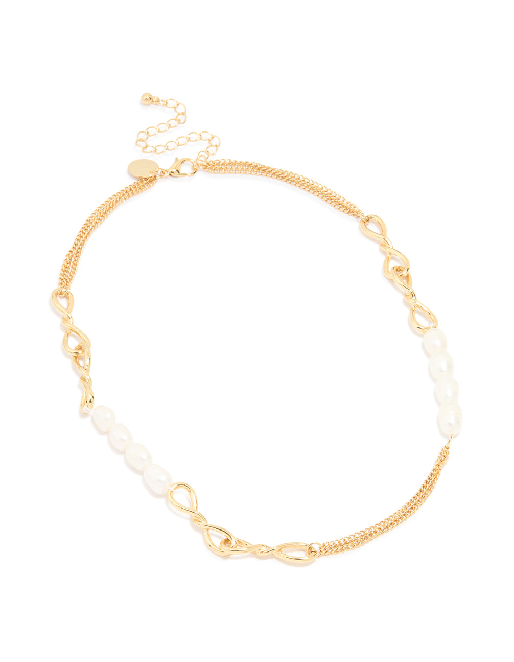 Gold Plated Freshwater Pearl & Twisted Link Chain Necklace
