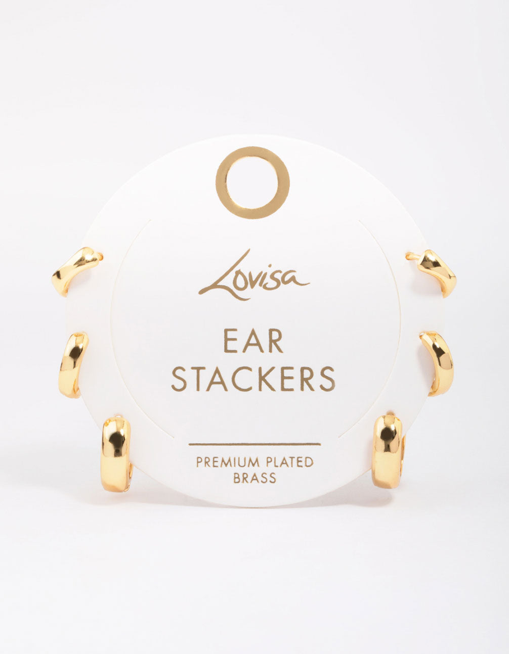 For a timeless look, style these gold plated brass hoop earrings. This hoop earring pack contains three sets of huggies, each in graduating sizes. Perfect for layering, or styling solo!