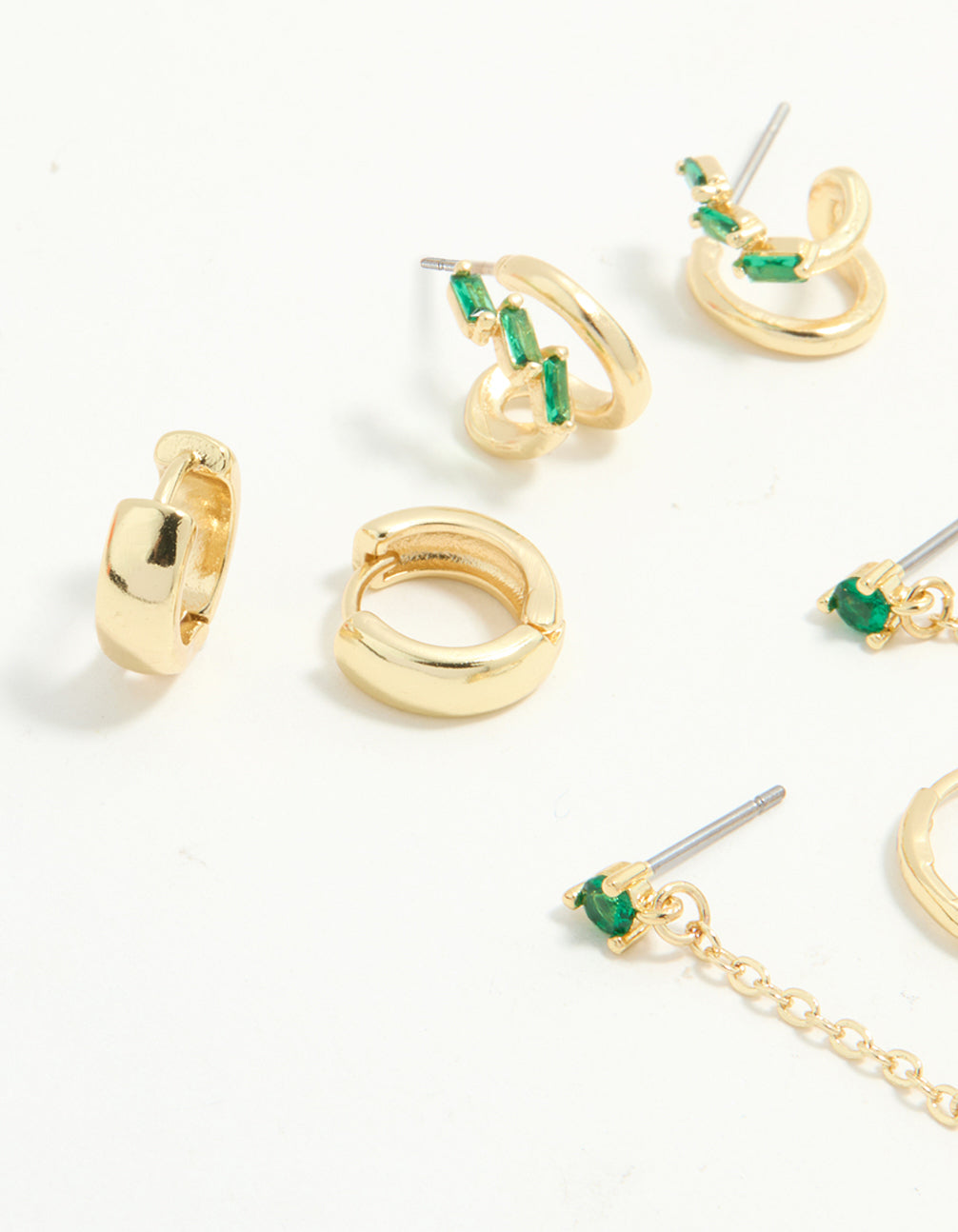 Gold Plated Green Cubic Zirconia Stacker Earrings 5-Pack