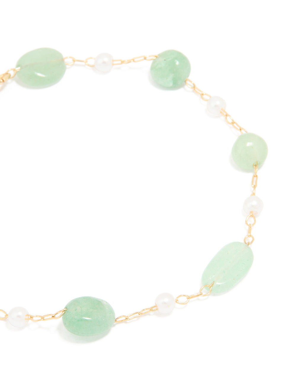 Gold Plated Green Semi Precious Stone & Mini Pearl Bracelet