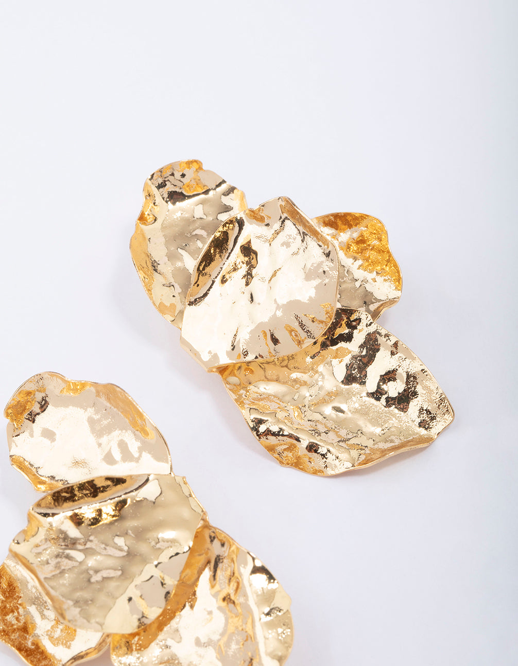 These gold plated statement studs feature a unique, floral design for added interest to your stack.