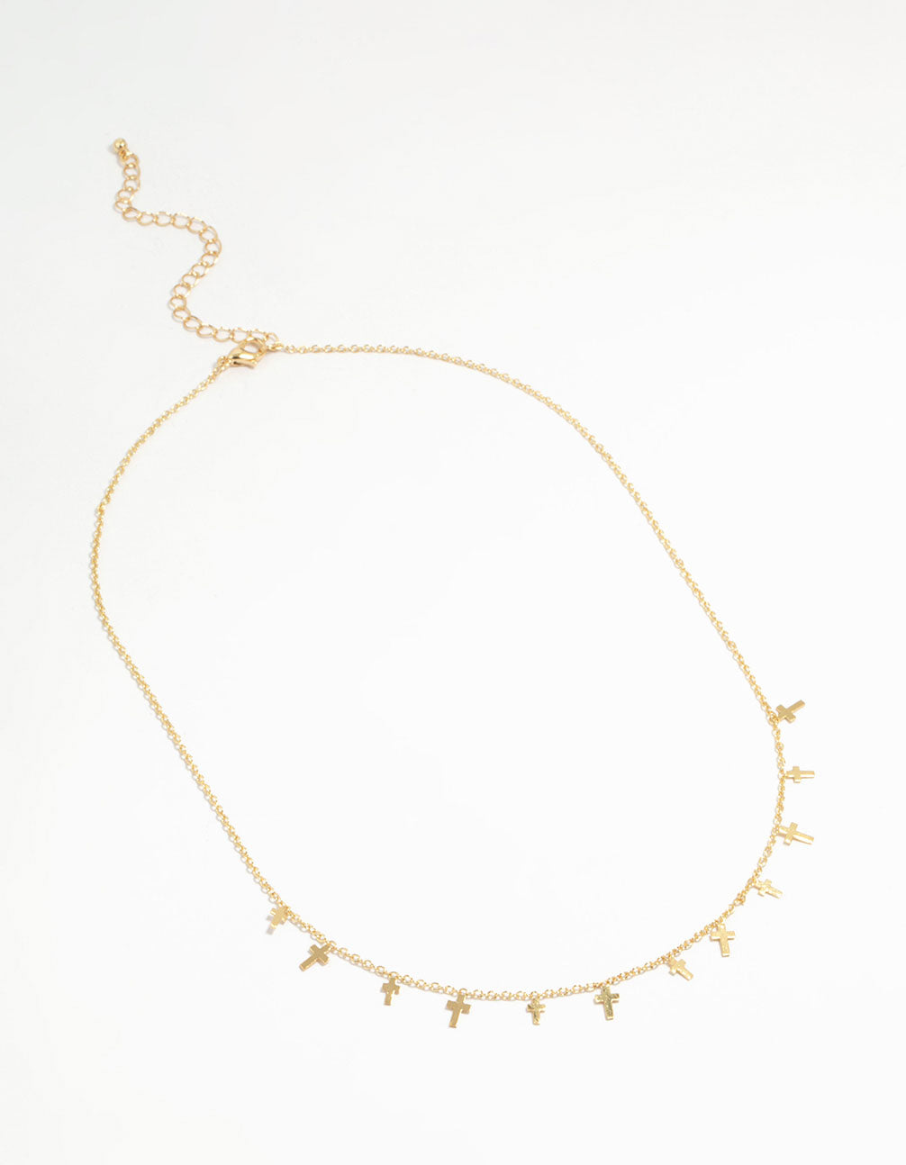 Elevate your everyday look with this Gold Plated Mini Cross Charm Necklace, a must-have piece of jewellery for effortless style. This dainty pendant necklace features mini cross charms, delicately crafted and plated in gold for a timeless finish. Perfect for adding a subtle touch of elegance, it's ideal for layering with other necklaces or wearing solo for a minimalist vibe. Whether you're heading to brunch, a casual day out, or dressing up for a night with friends, this versatile necklace pairs beautifully with everything from a cosy jumper to your favourite little black dress. A chic and meaningful accessory, it's a go-to for any occasion.