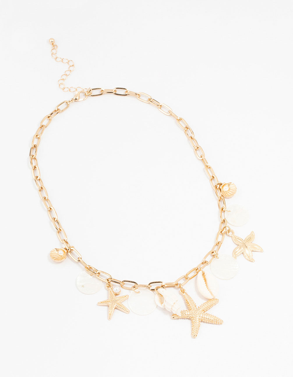 Gold Plated Mixed Charm Shell And Stone Necklace