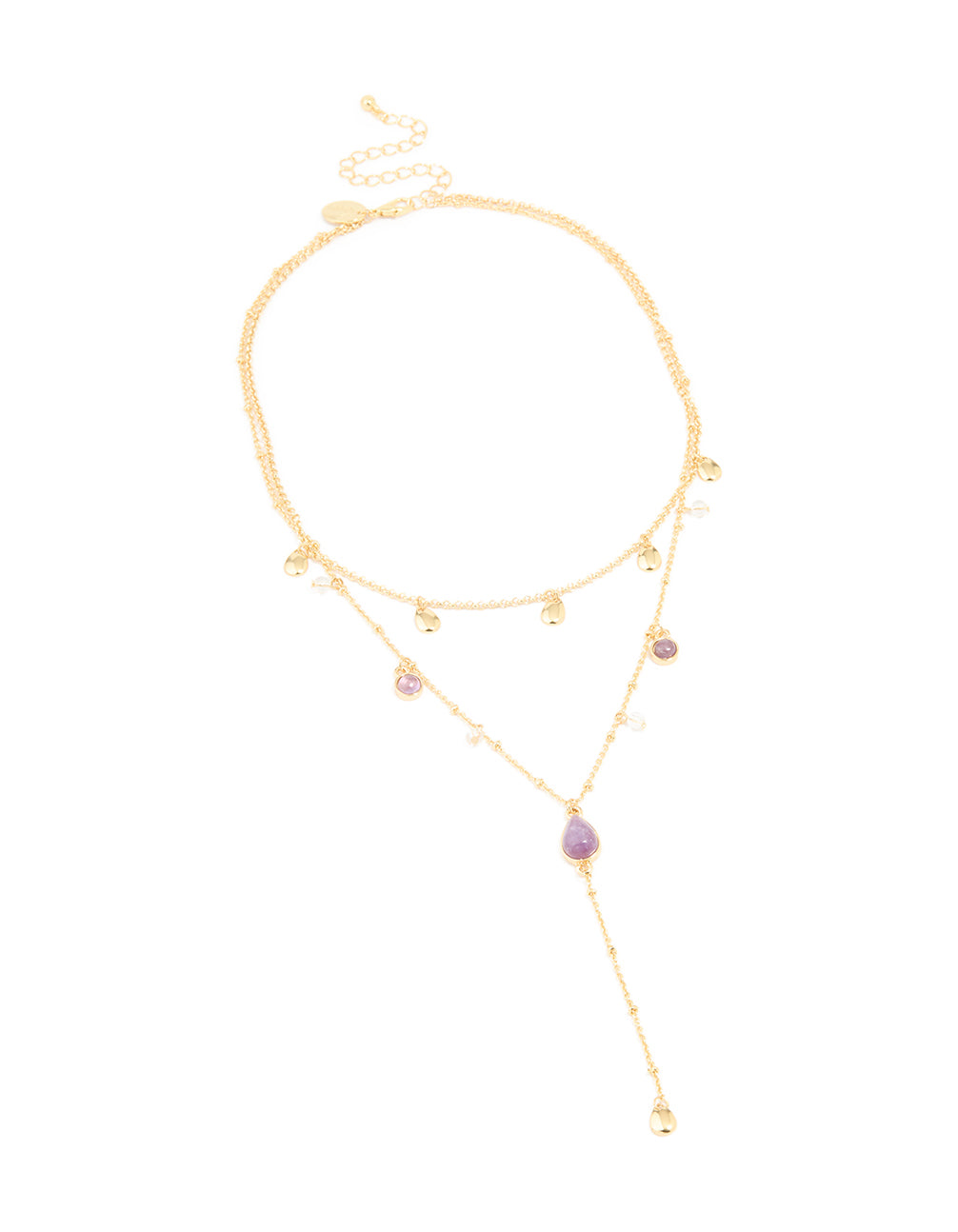 Gold Plated Purple Semi Precious Stone Droplet Layered Y-Necklace