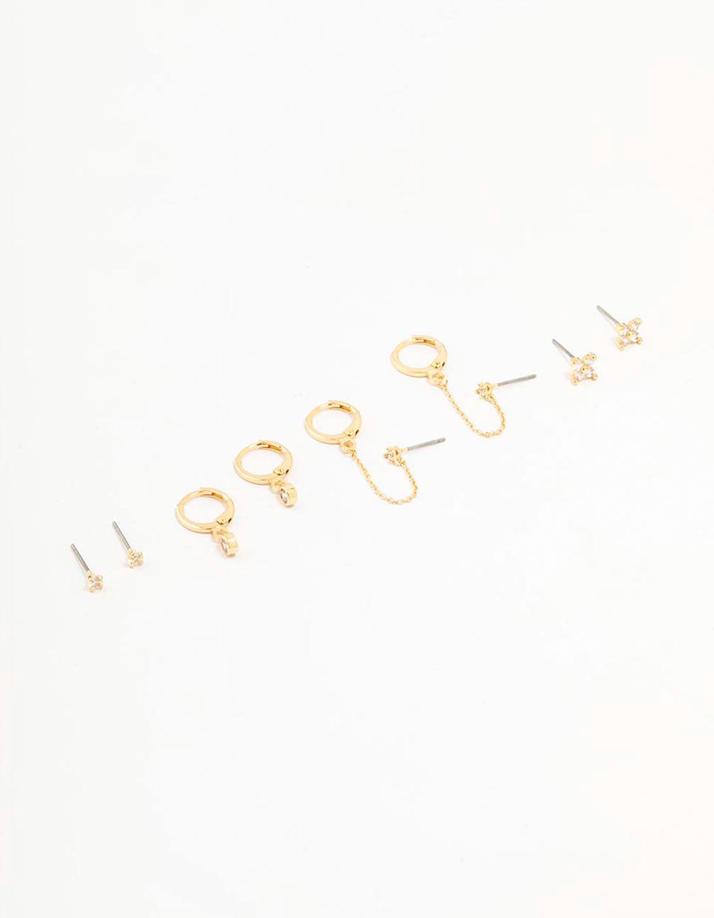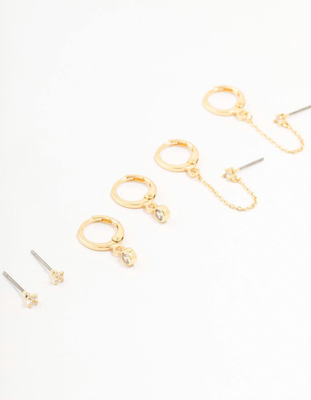 Gold Plated Round Cubic Zirconia & Chain Earrings 5-Pack