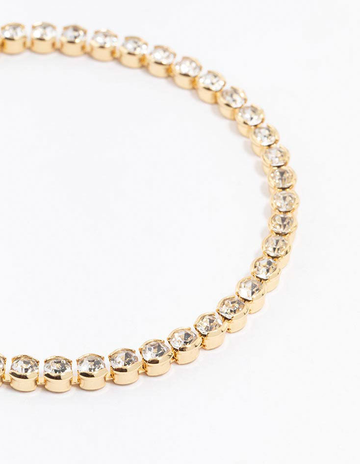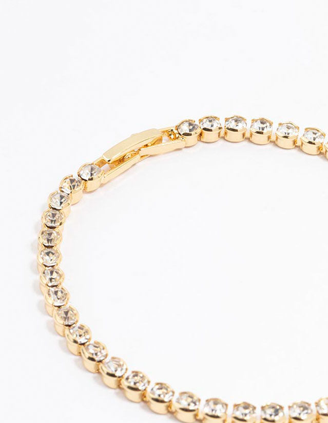 Gold Plated Round Diamante Tennis Bracelet