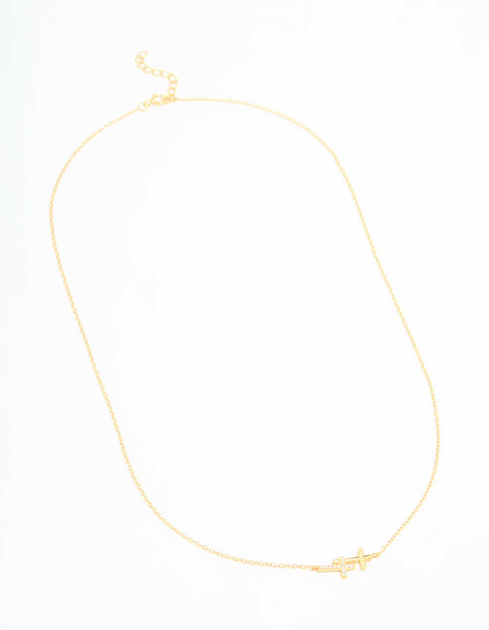 Add a little sparkle to your everyday with this Gold Plated Sterling Silver Cubic Zirconia Double Cross Necklace. This stunning pendant necklace features a modern double cross design, crafted from sterling silver with gold plating for a timeless yet contemporary feel. Adorned with shimmering cubic zirconia crystals, it's perfect for adding subtle elegance to any outfit. Whether you're dressing up for a night out or adding a chic touch to your casual wardrobe, this versatile jewellery piece is your new go-to. Pair it with a flowy dress for a boho vibe or layer it with other necklaces for a stylish, stacked look. Ideal for anyone who loves stylish, meaningful accessories!
