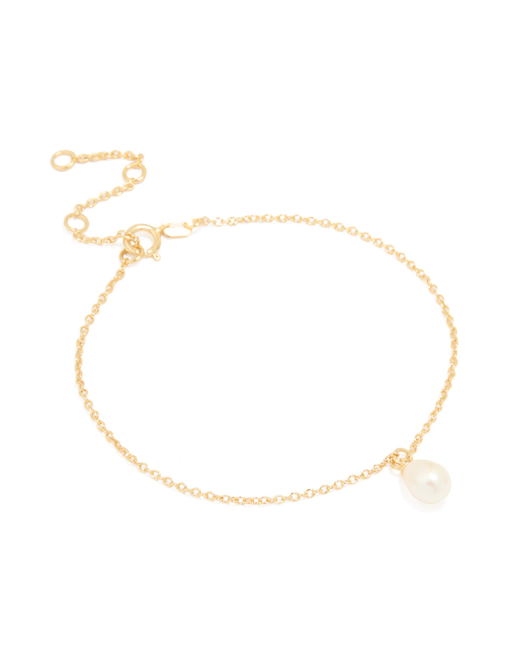 Gold Plated Sterling Silver Pearl Charm Bracelet