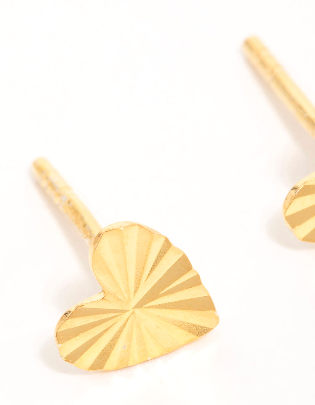 Gold Plated Sterling Silver Ribbed Heart Stud Earrings