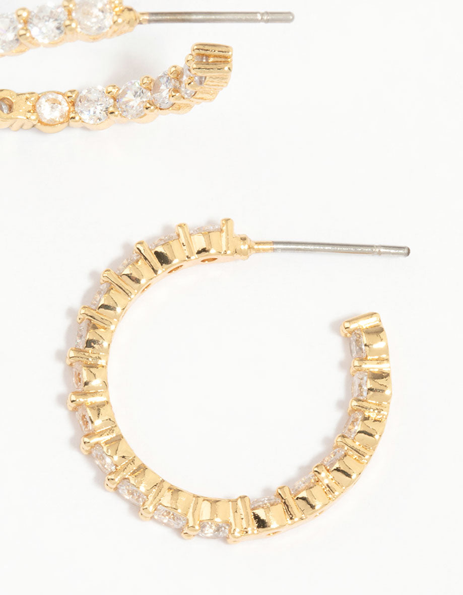 Add some sparkle with these gold-plated hoops! Featuring sparkly stones and a medium size, they offer a glam twist on the classic hoop design.