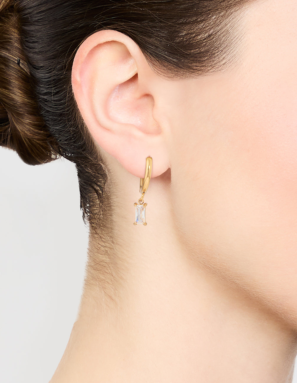 Waterproof Gold Plated Stainless Steel Baguette Diamante Huggie Earrings
