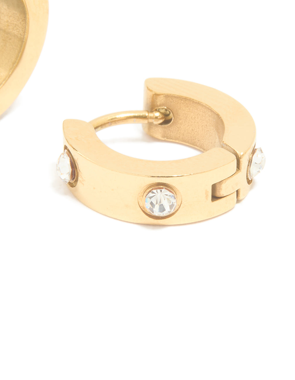 Gold Plated Surgical Steel Cubic Zirconia Chunky Hoop Earrings