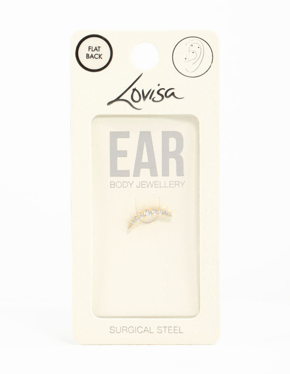 Gold Plated Surgical Steel Cubic Zirconia Crawler Single Flat Back