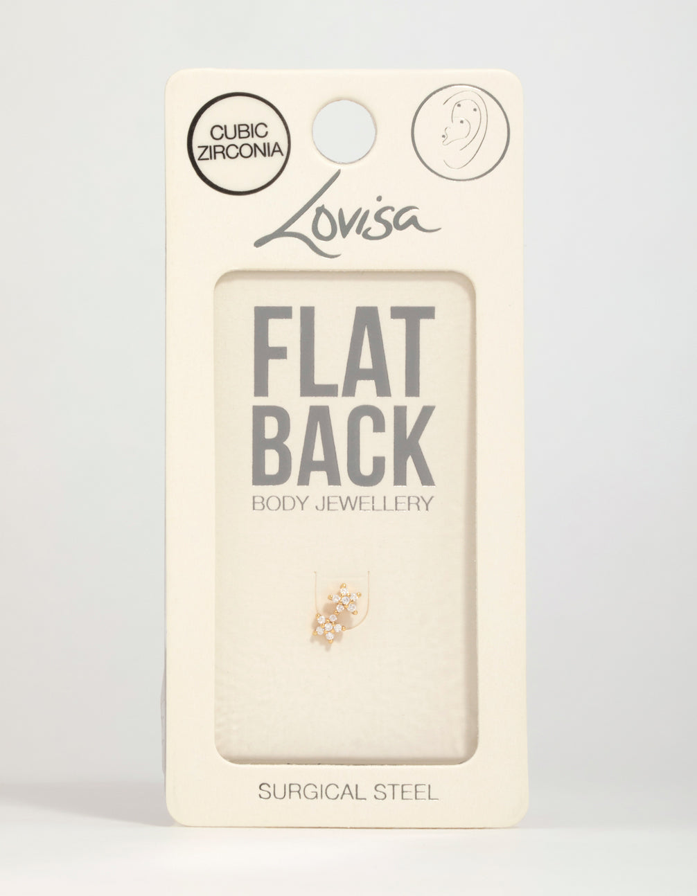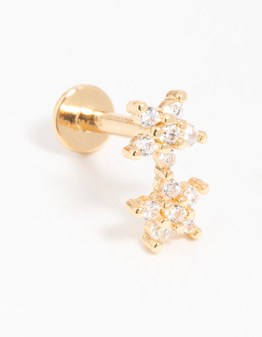 Gold Plated Surgical Steel Cubic Zirconia Double Star Flat Back Stud