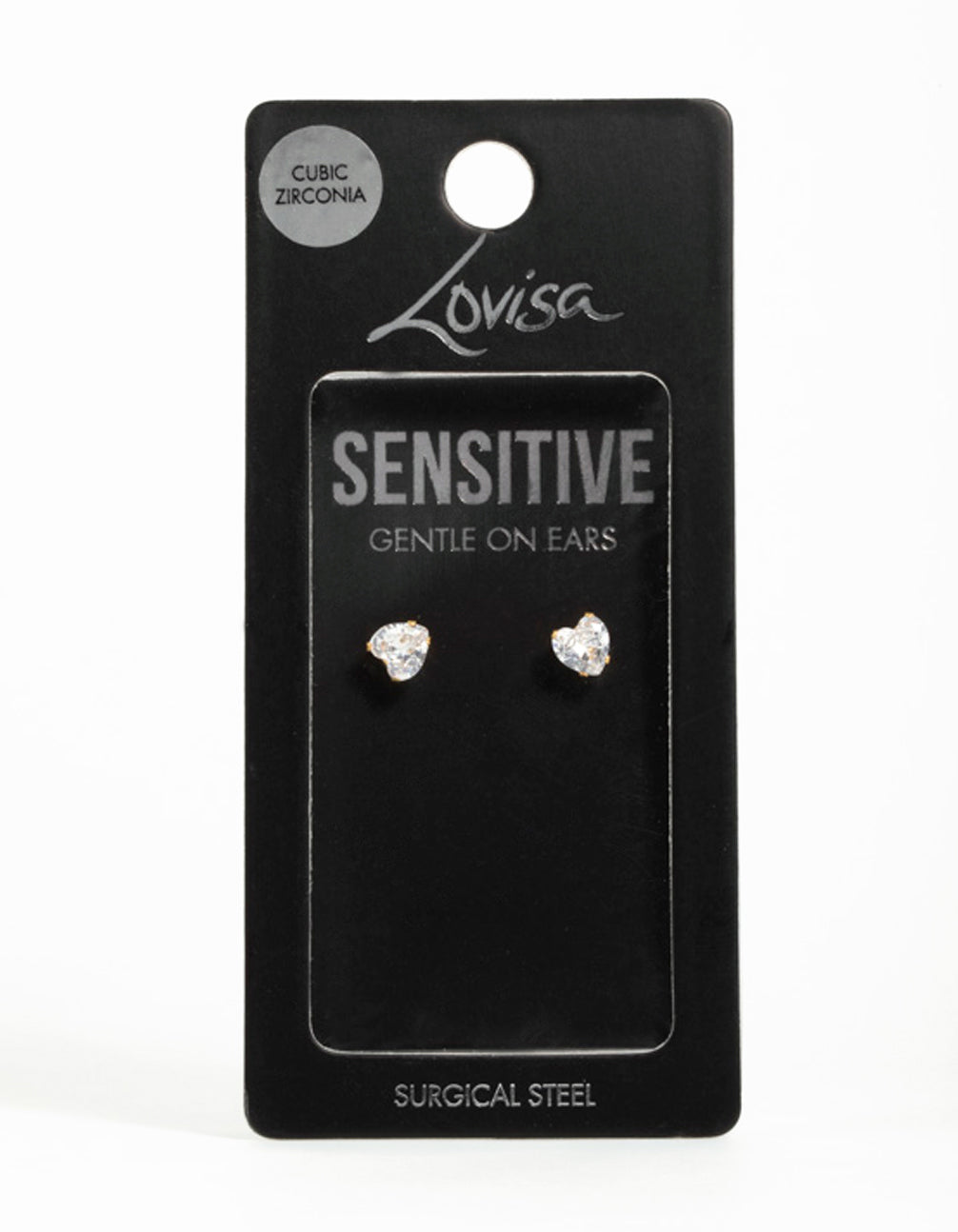 Bring love into your look with these Gold Plated Surgical Steel Cubic Zirconia Heart Claw Stud Earrings. Crafted from surgical steel, making them perfect for sensitive ears and feature heart shaped cubic zirconia crystals.