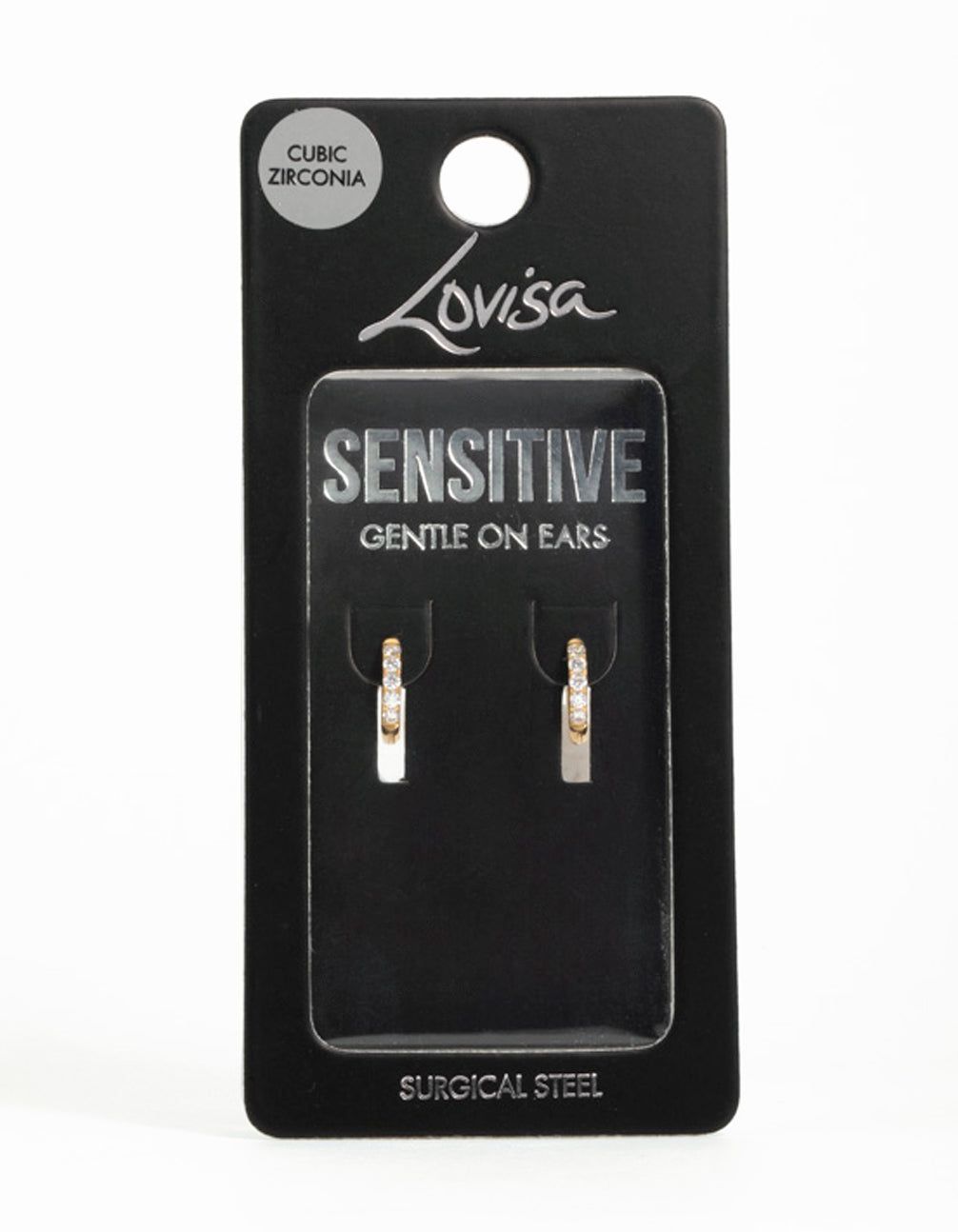 Add a little sparkle to your day with these Gold Plated Surgical Steel Cubic Zirconia Hoop Earrings! Designed with sensitive ears in mind, these chic hoop earrings are crafted from durable surgical steel and feature cubic zirconia accents.