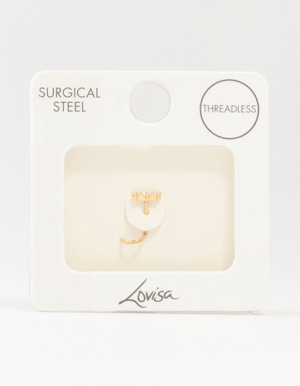 Gold Plated Surgical Steel Cubic Zirconia Trio Threadless Nose Stud