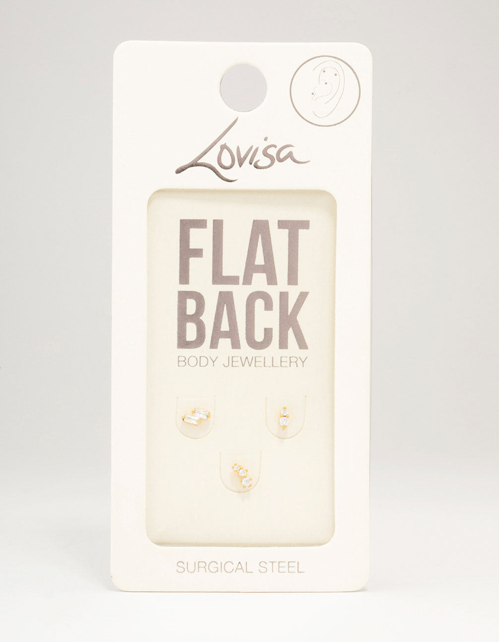 Personalise your stack with our selection of premium, surgical steel piercing jewellery. This flat back pack contains three individual, gold plated piercings. Each adorned with cubic zirconia crystals for a touch of glamour!