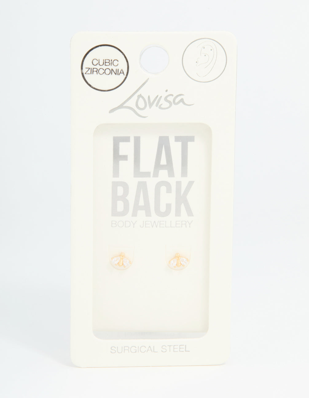Gold Plated Surgical Steel Double Bee Cubic Zirconia Flat Back Studs