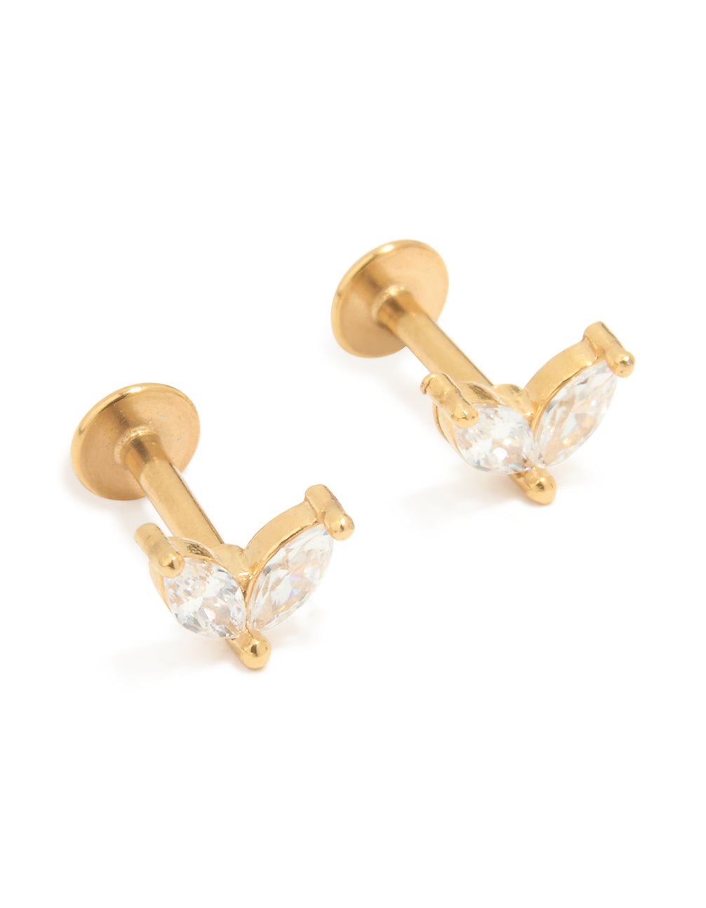 Gold Plated Surgical Steel Double Leaf Cubic Zirconia Flat Back Studs