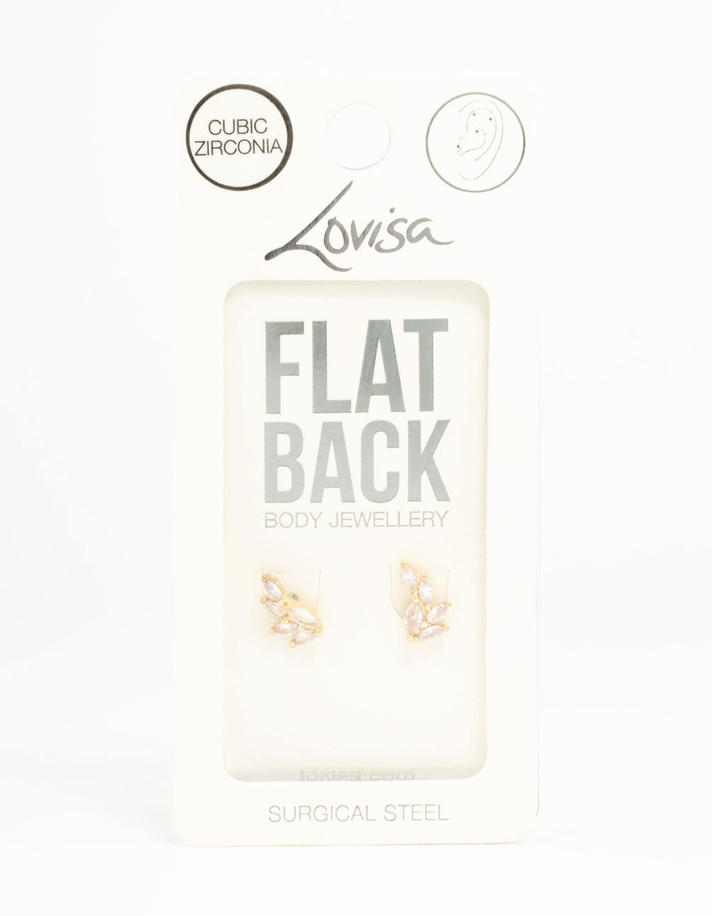 Add a hint of sparkle to your look with this pair of flat back studs. This pack features a comfy crawler flat back design, surgical steel base and marquise cubic zirconia crystals for added glam. Great for comfy all day wear.