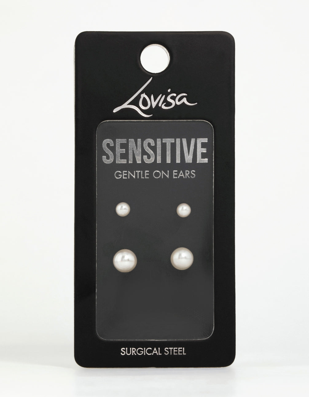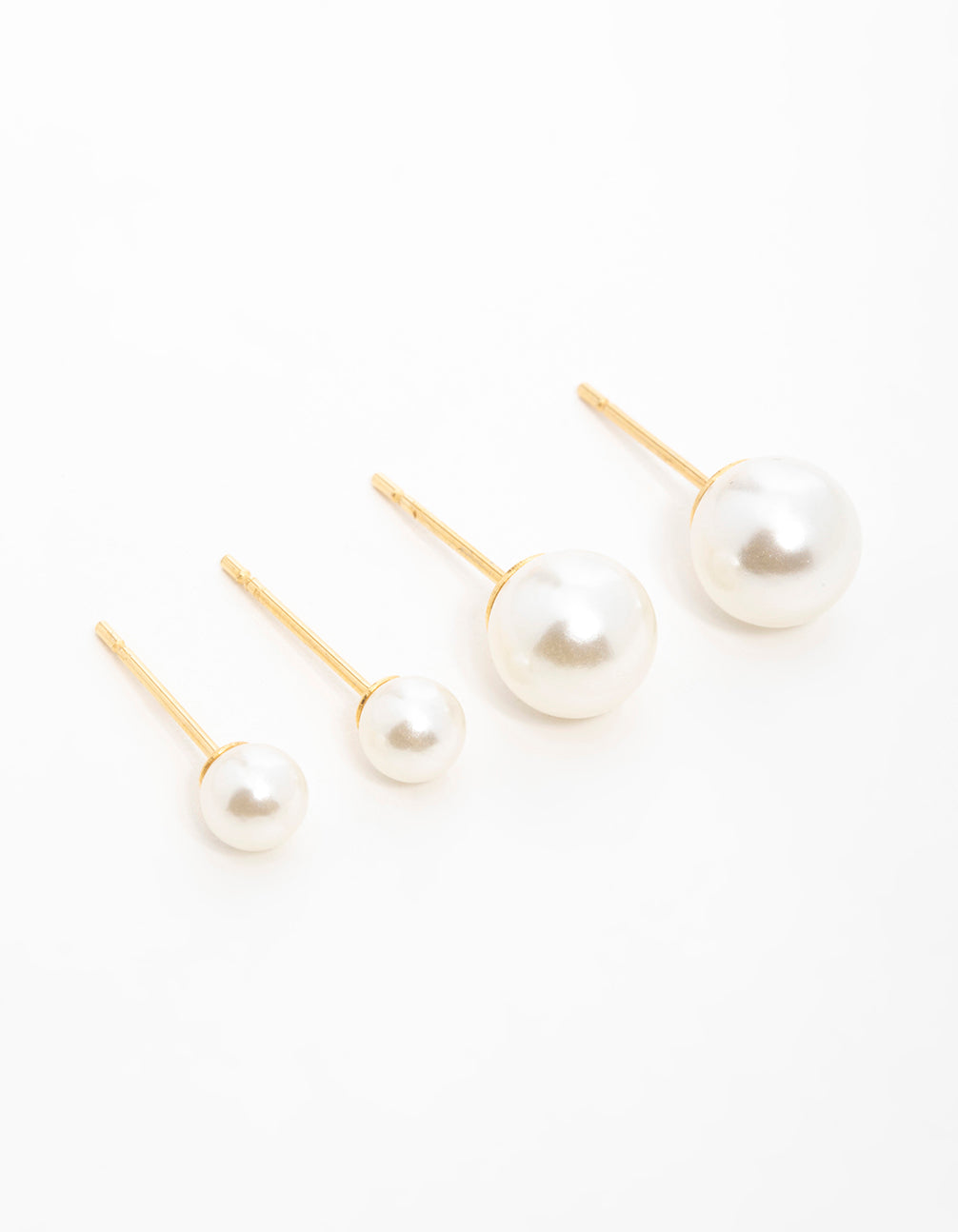 Gold Plated Surgical Steel Pearl Stud Earrings 2-Pack