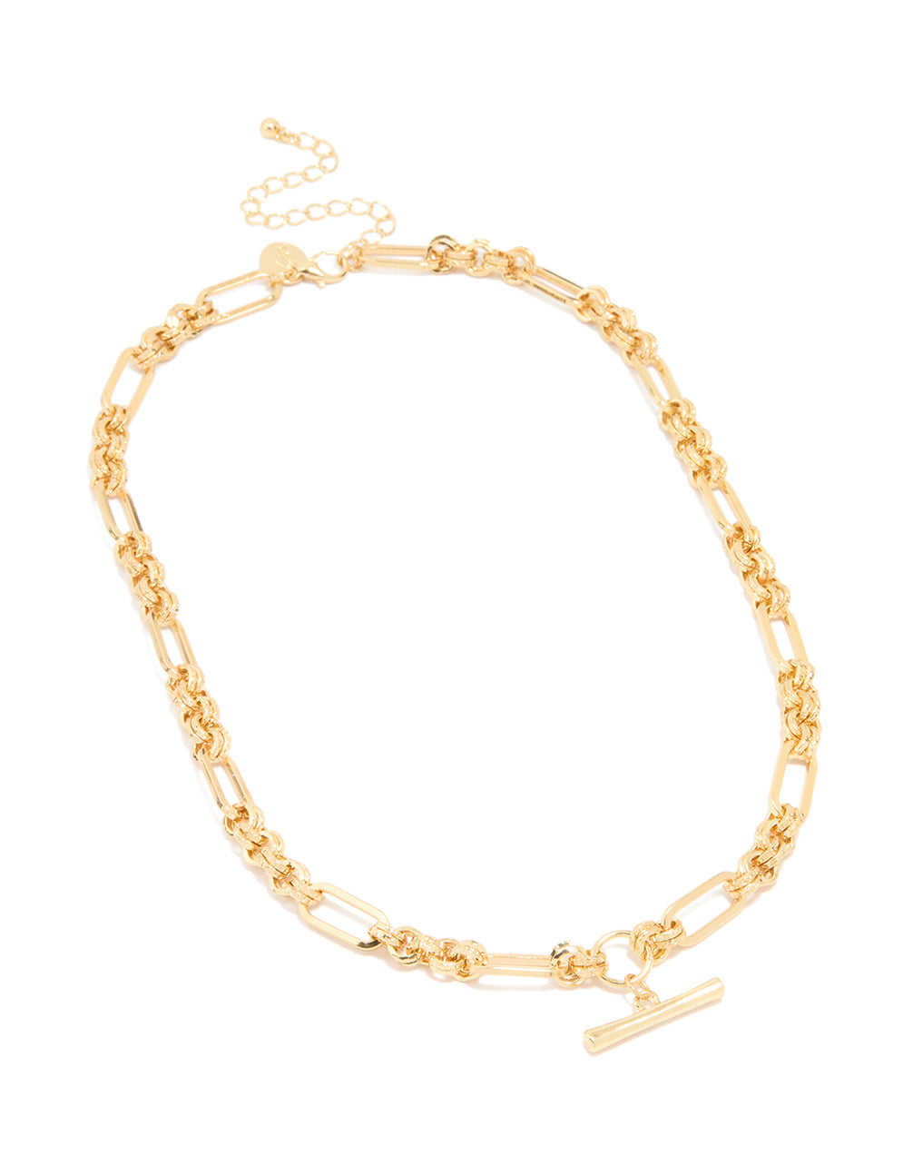 Elevate your look with this Gold Plated Thick Figaro Bar Necklace. Featuring a bold Figaro chain design with sleek bar accents, this necklace combines timeless elegance with a modern edge. Crafted from precious metals and finished with luxurious gold plating, it's a statement accessory you'll love to wear. Pair it with a crisp blazer for a polished daytime look or layer it over a little black dress for effortless evening glamour. Whether you're dressing up for a night out or adding flair to your everyday style, this pendant necklace is the perfect finishing touch to complement your wardrobe.