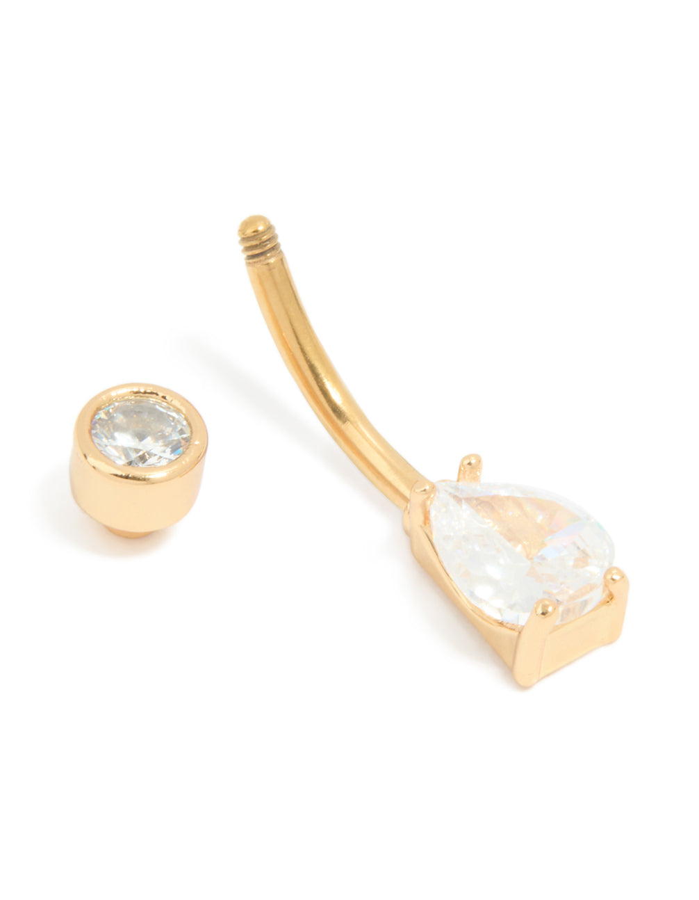 Add a touch of glam to your belly piercing with this Gold Plated Titanium Cubic Zirconia Double Belly Bar! Designed for belly button piercings, this stunning belly bar features two dazzling cubic zirconia crystals. Made from titanium with a luxe gold plating, it’s lightweight, durable, and perfect for everyday wear or dressing up. Pair it with your favourite crop top or bikini to show off its sparkle. Whether you're heading to the beach or out with friends, this belly bar will add a fun, stylish vibe to your look. Perfect for those who love chic, body jewellery!